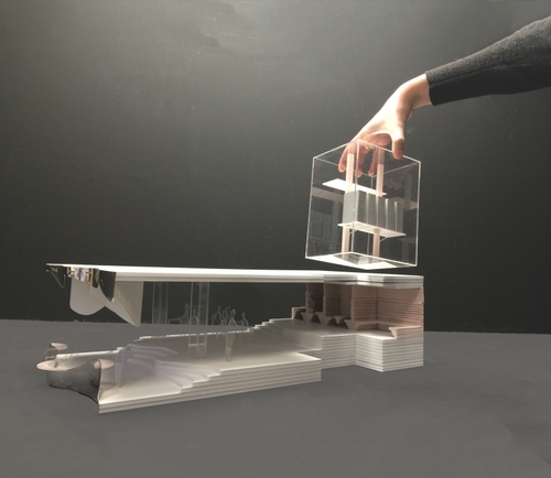A Gem for Boston University was developed collaboratively with Colin DaPonte during our undergraduate comprehensive design studio at Northeastern University. Students were paired up with the purpose of developing a building with a program of their choosing in the very heart of Boston University's campus. Given the inaccessibility of the site, our proposal was based on a precast system that would minimize the amount of site work. Likewise because our project would house institutional functions, our approach was highly modular so as to maximize the flexibility and adaptability of the interior program.